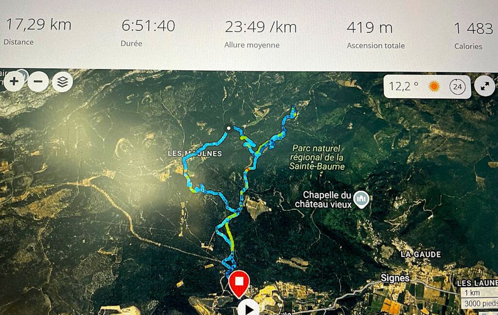 Malgré un temps plutôt menaçant et frais dû au vent présent, ils se sont retrouvés aprés un rapide déplacement en voiture au parking de Janas pour une marche rando de 7 km d’environ 2h30 avec un dénivelé de 230m.