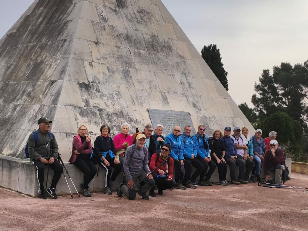 Ils étaient 19  (record de participation battu) à s’être donnés rendez vous à 8h30 au port de Saint Elme pour se lancer à l’assaut de Saint Mandrier et notamment du cimetière italien.                             Le Cimetière Franco-Italien est une Nécropole nationale où sont inhumés des soldats de la Première Guerre Mondiale et des soldats italiens de la Seconde Guerre Mondiale.                                                     Considéré comme l’un des plus beaux cimetières de France, vous y trouverez un mausolée en forme de pyramide mesurant près de 8m de haut et cerné par 2 sphinx, datant de 1810.