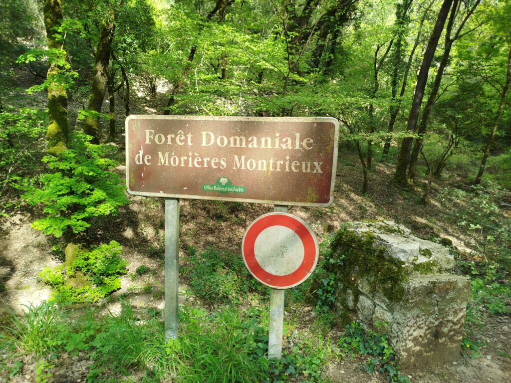 Le point de départ se fait au Parking  de la route de la Chartreuse de Montrieux le Jeune | Un totem indique le départ de la randonnée