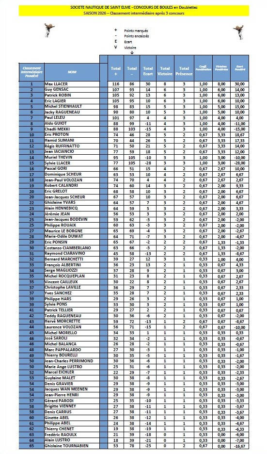 Résultats du concours de pétanque en doublettes du Vendredi 6 Mars 2026