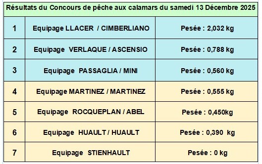 Le concours s’est déroulé de 16h00 à 20h00 avec une mer calme et une température clémente pour un mois de décembre.