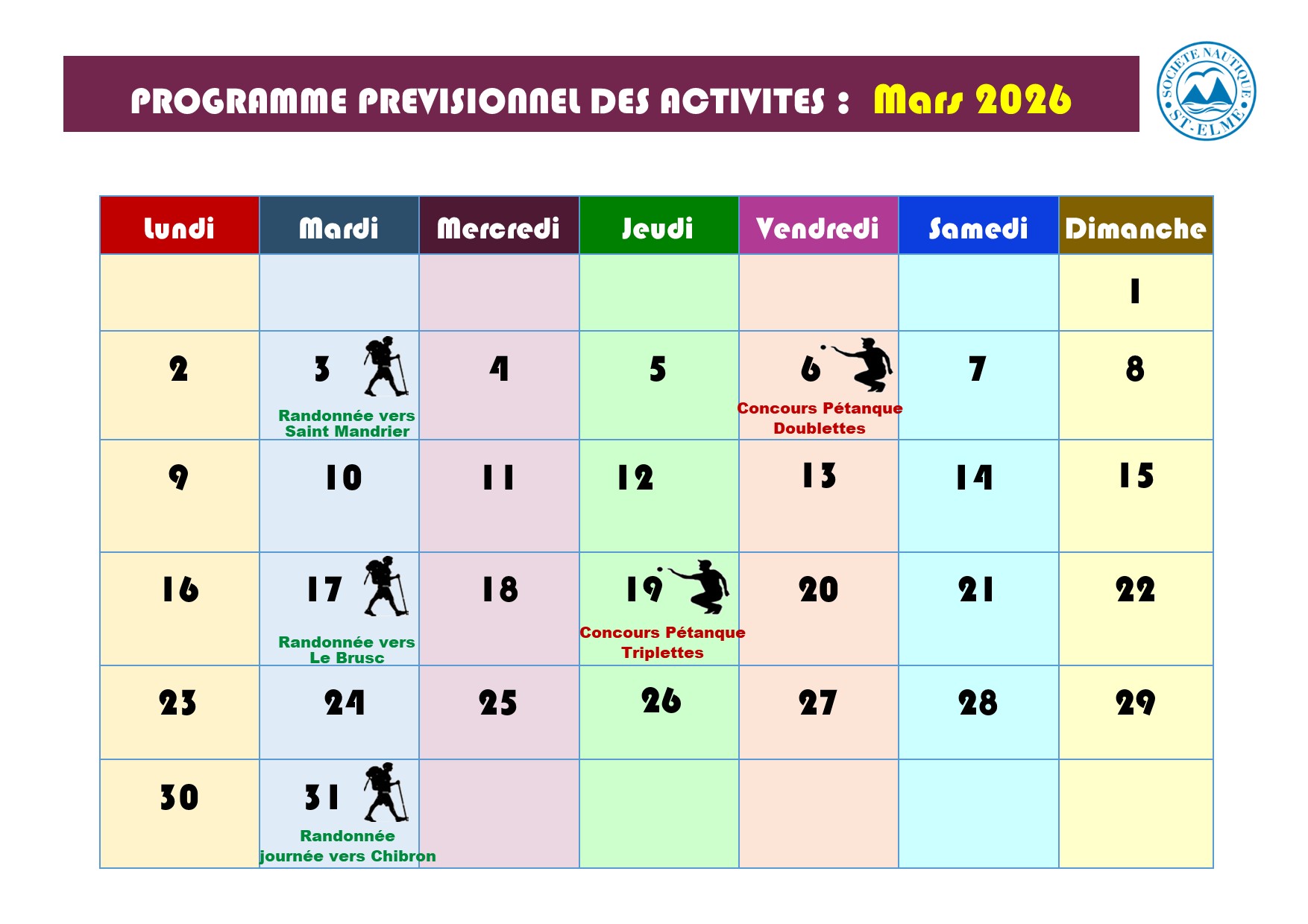 Actualités Actu pétanque Actu pêche Actu Randonnée Programme mensuel des activités Actualités - Informations