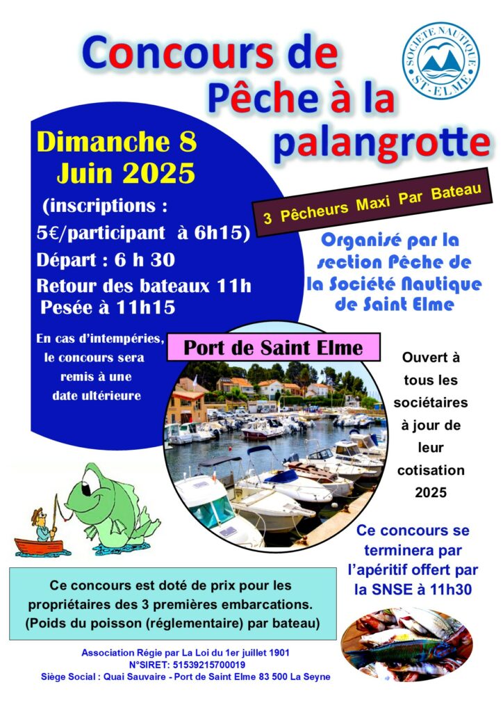 - Concours de Pêche (traîne, verticale ou palangrotte, calamars…)
